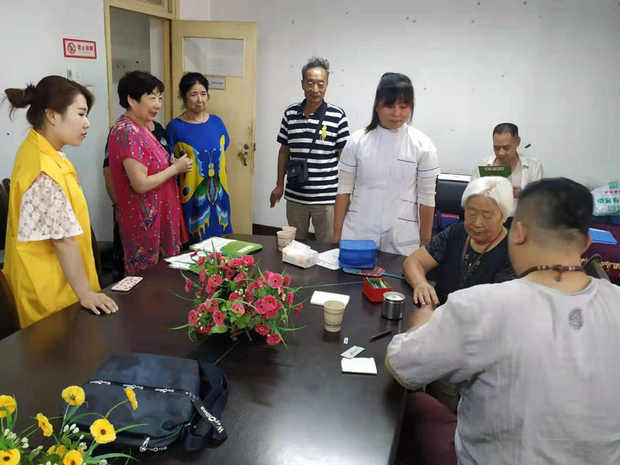 岳老師逐一為群眾解答疾病的預防和保健常識,面對面耐心細致的講解中醫(yī)保健知識,并為轄區(qū)群眾進行免費手療診手療服務,手把手教給社區(qū)居民怎么通過手部按摩手法調(diào)理自己的病癥,對其它常見的慢性病、多發(fā)病的預防和治療,把自身從事手療20多年的經(jīng)驗分享給了廣大社區(qū)民眾。