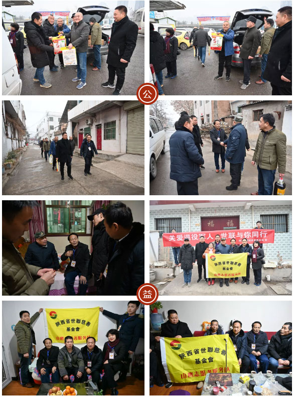 為弘揚黨和政府的擁軍優(yōu)屬光榮傳統(tǒng),傳遞社會正能量,共鑄軍民魚水情。1月15-18日,新春佳節(jié)來臨之際,陜西省世聯(lián)慈善基金會會長蔣宏權(quán)、山鷹志愿者服務(wù)隊隊長李建華組成的慰問團(tuán)隊赴西安市13個區(qū)(縣)、渭南市、華陰市上門走訪慰問了烈士遺屬、帶病回鄉(xiāng)退伍軍人、參戰(zhàn)退役人員等優(yōu)撫對象代表69位,為他們送去慰問品,并致以新春的美好祝福。