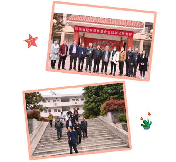 2020年4月10日,由陜西省世聯(lián)慈善基金會(huì)執(zhí)行理事長(zhǎng)劉京翰以及鄧博、王衛(wèi)宏、蘆泉生、于靜華、程虹等會(huì)長(zhǎng)共同組成12人助學(xué)考察團(tuán)到眉縣湯峪鎮(zhèn)中心聯(lián)合小學(xué)進(jìn)行實(shí)地考察調(diào)研。