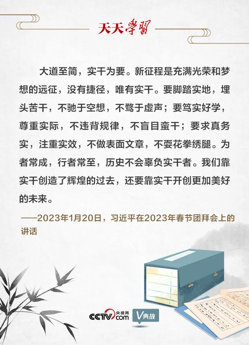 1月20日舉行的2023年春節(jié)團(tuán)拜會(huì)上,習(xí)近平總書記指出,新征程是充滿光榮和夢(mèng)想的遠(yuǎn)征,沒有捷徑,唯有實(shí)干。他引用古語“為者常成,行者常至”,發(fā)出新春號(hào)召:歷史不會(huì)辜負(fù)實(shí)干者。我們靠實(shí)干創(chuàng)造了輝煌的過去,還要靠實(shí)干開創(chuàng)更加美好的未來。