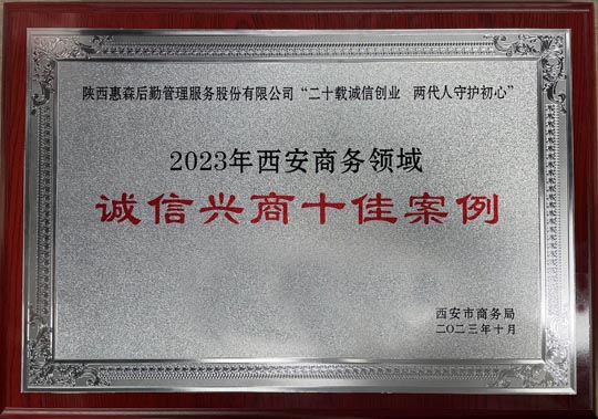 為深入貫徹習(xí)近平總書記關(guān)于社會信用體系建設(shè)重要指示精神,落實(shí)好商務(wù)部及省市關(guān)于推進(jìn)誠信建設(shè)的有關(guān)要求,2023年10月19日,由西安市商務(wù)局、西安市商聯(lián)會組織的2023年西安商業(yè)誠信大會在西安隆重召開。會上表彰了2023年全市商貿(mào)行業(yè)“誠信興商十佳案例”和“誠信興商”優(yōu)秀案例,陜西惠森后勤管理服務(wù)股份有限公司作為獲獎單位參加了本次大會。