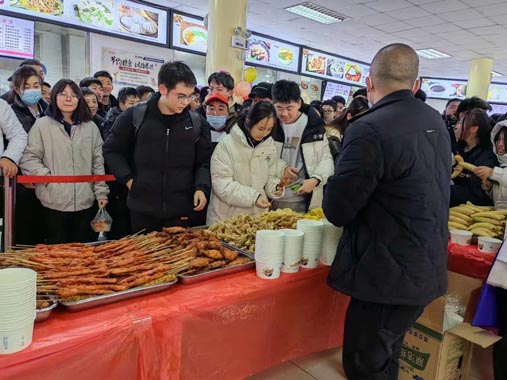 隨后,各餐飲展臺(tái)紛紛拿出自家絕活,各種各樣美味佳肴精彩呈現(xiàn)。蒸餃、缽缽雞、各式烤肉、壽司、糖葫蘆、……一道道美食讓師生們盡飽口福、大呼過(guò)癮。很多菜肴吸引到師生駐足拍照、鑒賞,現(xiàn)場(chǎng)氣氛熱鬧非凡。