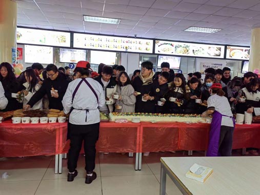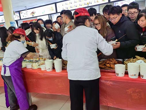 淺冬生寒意,微光暖人心。2023年12月15日,為了讓利學(xué)生,豐富校內(nèi)師生文化生活,宣傳愛(ài)糧節(jié)糧的價(jià)值觀念,惠森公司延安職業(yè)技術(shù)學(xué)院保障區(qū)組織開(kāi)展了美食節(jié)品鑒活動(dòng),為校內(nèi)師生提供免費(fèi)的美食,讓大家一起共享暖冬“食”光。
