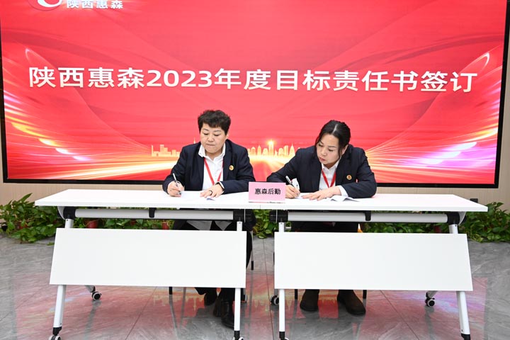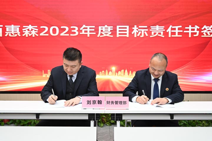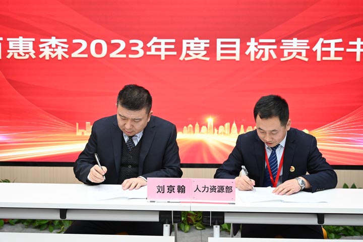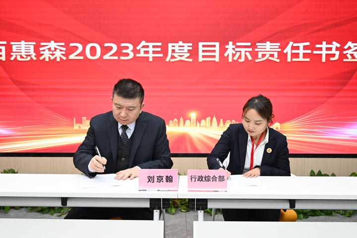 會議最后,惠森集團董事長劉京翰、副總經(jīng)理高漢利、惠森后勤股份公司總經(jīng)理孟敏分別與各部門、子公司、保障區(qū)負責人簽訂目標責任書,簽下的每一筆每一畫,都代表著公司領(lǐng)導的殷殷期許和相關(guān)責任人再創(chuàng)輝煌的決心,全體惠森員工必將鼓足干勁、以目標為導向,為全年目標任務(wù)的實現(xiàn)奮勇拼搏!