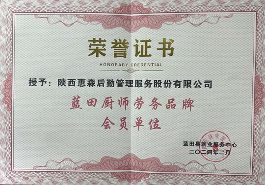 “藍(lán)田廚師”勞務(wù)品牌作為我省省級(jí)勞務(wù)品牌,是具有鮮明地域標(biāo)記、過(guò)硬技能特征和良好用戶口碑的勞務(wù)標(biāo)識(shí),陜西惠森后勤管理服務(wù)股份有限公司能被評(píng)為“藍(lán)田廚師勞務(wù)品牌會(huì)員單位”是對(duì)公司多年辛勤耕耘的充分肯定,也體現(xiàn)出了公司在廚師人才培養(yǎng)和就業(yè)安置方面作出貢獻(xiàn)與努力。作為一家餐飲公司,公司擁有一支高水平、高素質(zhì)的膳食管理和服務(wù)團(tuán)隊(duì),非常重視人才培養(yǎng)工作,定期會(huì)對(duì)各管理團(tuán)隊(duì)、廚師隊(duì)伍、業(yè)務(wù)精英、服務(wù)人員進(jìn)行專業(yè)知識(shí)和綜合素質(zhì)教育培訓(xùn)。管理方面也按照流程化、標(biāo)準(zhǔn)化模式進(jìn)行,得到了合作企業(yè)的一致好評(píng)。
