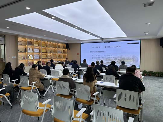 培訓(xùn)會(huì)上,許曉春教授圍繞茶經(jīng)與飲茶法、茶飲五要、茶道與傳統(tǒng)文化等內(nèi)容進(jìn)行授課,系統(tǒng)的介紹了中國(guó)茶文化的前世今生,深入淺出地闡述了《茶經(jīng)》這部千年古籍所蘊(yùn)含的深刻哲理,以及飲茶法背后的文化意蘊(yùn)。在談到茶道與傳統(tǒng)文化的關(guān)系時(shí),許教授指出,茶道不僅是一種生活藝術(shù),更是一種修身養(yǎng)性的精神追求,它體現(xiàn)了中華民族崇尚自然、和諧共生的哲學(xué)思想以及“和、敬、清、寂”的精神內(nèi)涵,通過(guò)茶道,人們可以感悟到天人合一的宇宙觀,以及尊老愛(ài)幼、謙遜有禮的人倫道德。