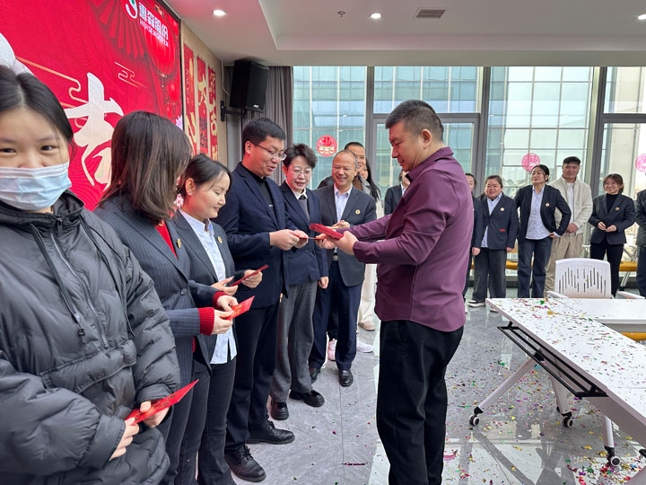 會(huì)議開始前,劉京翰董事長(zhǎng)與各部門、子公司負(fù)責(zé)人一起鳴響開工禮花炮,寓意再啟征程,2025年惠森公司開工大吉,萬事順意。隨后,劉總為在崗員工發(fā)新年開工紅包,祝福每一位員工新年大吉,旺上加旺,打開紅包,收到的是祝福與好運(yùn),象征著事業(yè)開門紅,全年發(fā)展好兆頭?;顒?dòng)現(xiàn)場(chǎng)歡聲笑語,洋溢著喜慶歡樂的氛圍。