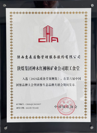 會上,公司紅柳林保障區(qū)再傳捷報,憑借其卓越的服務品質(zhì)、嚴格的食品安全管理以及創(chuàng)新的餐飲服務模式,在眾多參選單位中脫穎而出,榮獲2025年度中國團餐品質(zhì)食堂的殊榮。這一榮譽不僅是對惠森公司在團餐領域辛勤耕耘的高度認可,也是公司持續(xù)提升服務水平、踐行“服務創(chuàng)造價值”理念的有力見證。
